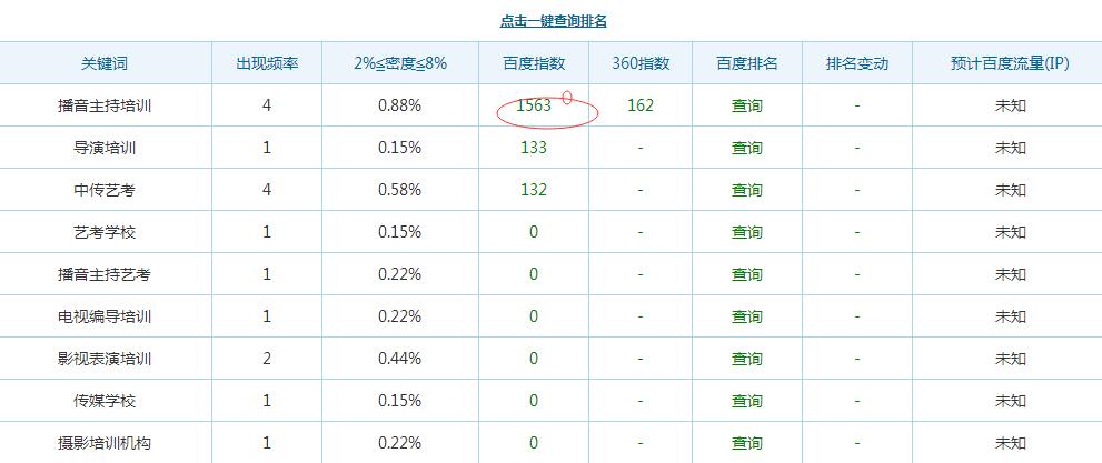 2.看了爱占的情况收入量是不错的,而且也有了权重,下面我们在看一下他们的关键词密度和指数如图: