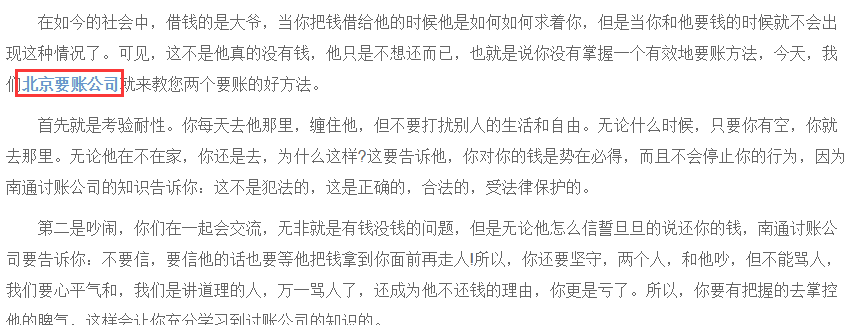 通过上图我们能够看到现在我们的关键词“北京要账公司”已经是位居移动端搜索引擎的首页,并且现在网站已经有了一些流量,这对我们的网站来讲是一件非常不错的好兆头,这意味着我们的网站现在处于上升阶段,为贵公司带来更高的知名度。